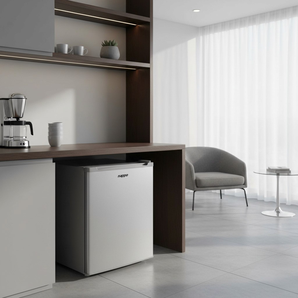 Perfecto para hoteles, oficinas o departamentos pequeños. Tiene todo lo necesario para que disfrutes de bebidas y snacks siempre fríos, con estilo y practicidad.
