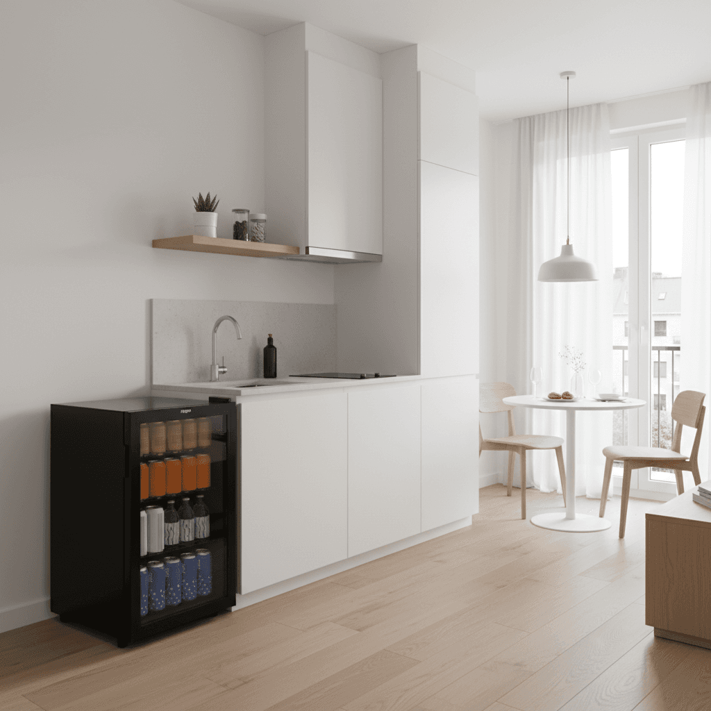 Diseño elegante con puerta transparente. Todo lo que te gusta a la vista. ¡El frigobar perfecto para refrescar tus momentos!