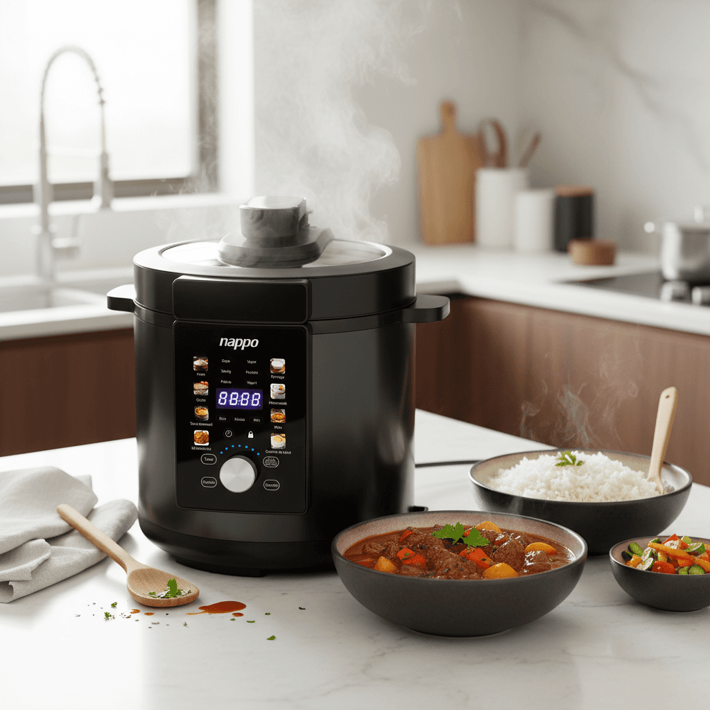 La olla a presión eléctrica es segura y fácil de usar, cocina un 70% más rápido que los métodos convencionales y además cocina de manera más saludable manteniendo todas las vitaminas y los minerales de los alimentos.