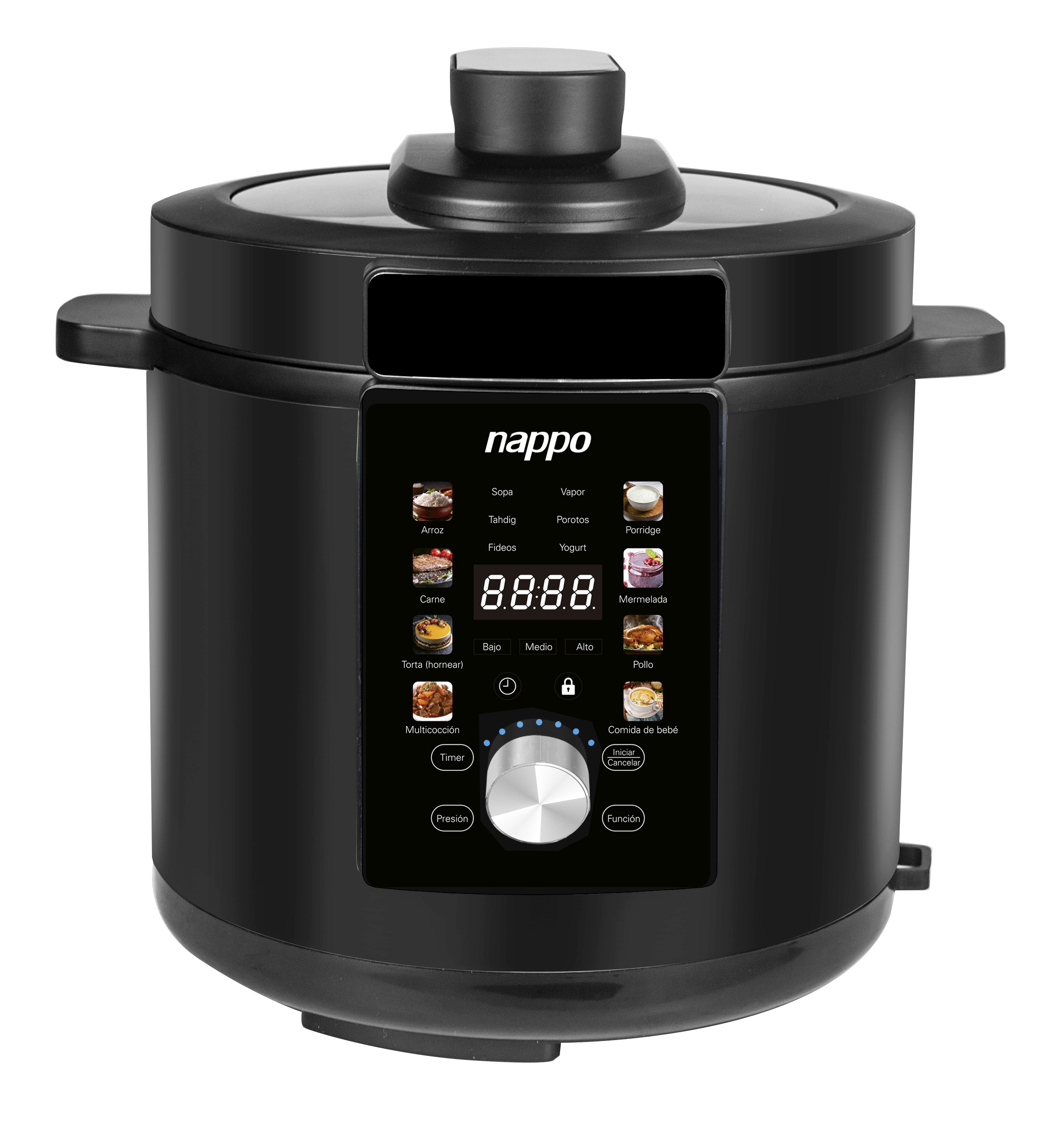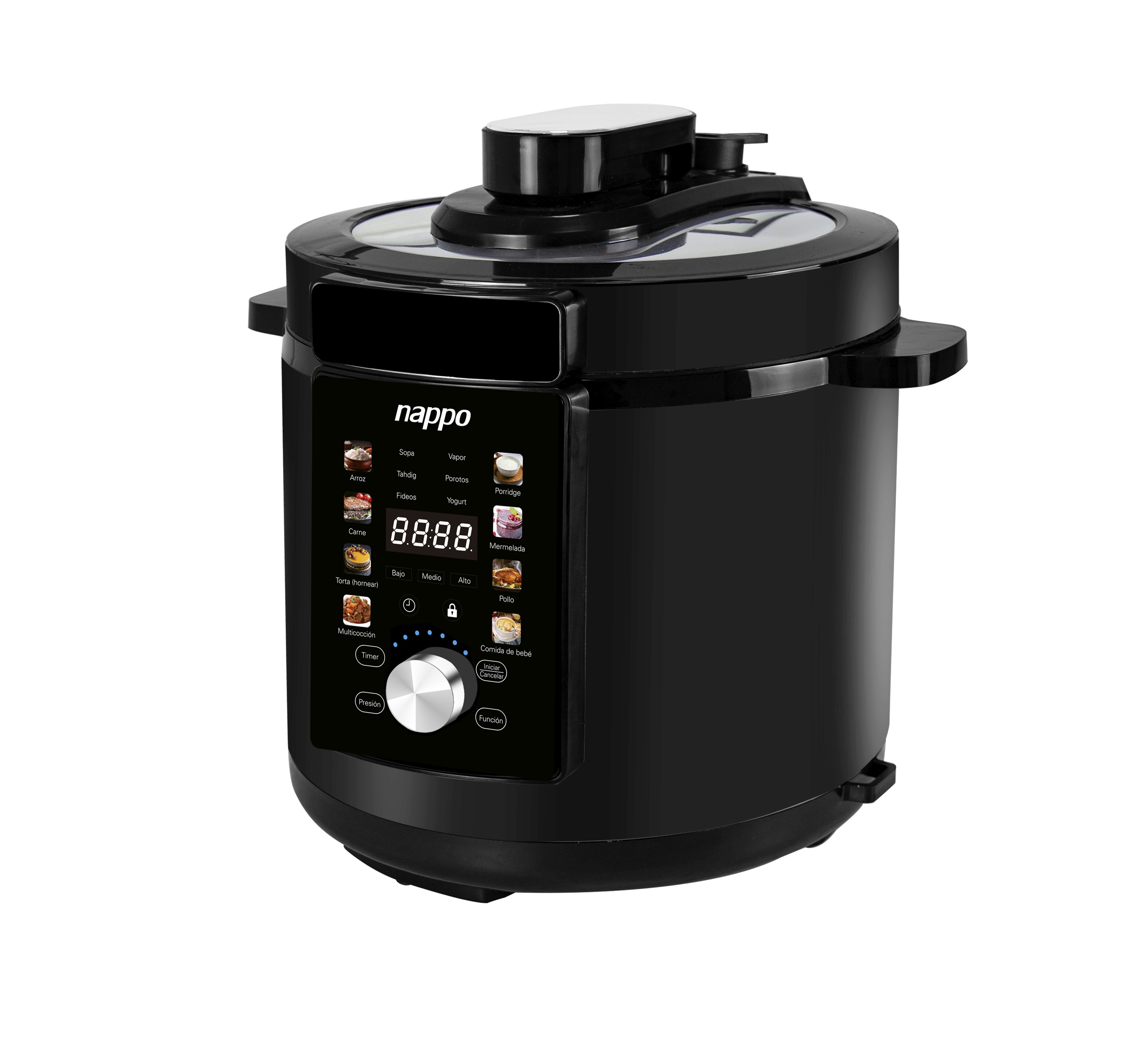 14 funciones de cocción preestablecidas (Múltiples funciones y fáciles de usar): Arroz, Came, Torta (hornear), Multicocción, Sopa, Tahdig, Fideos, Vapor, Porotos, Yogurt, Porridge, Mermelada, Pollo y Comida de bebé.