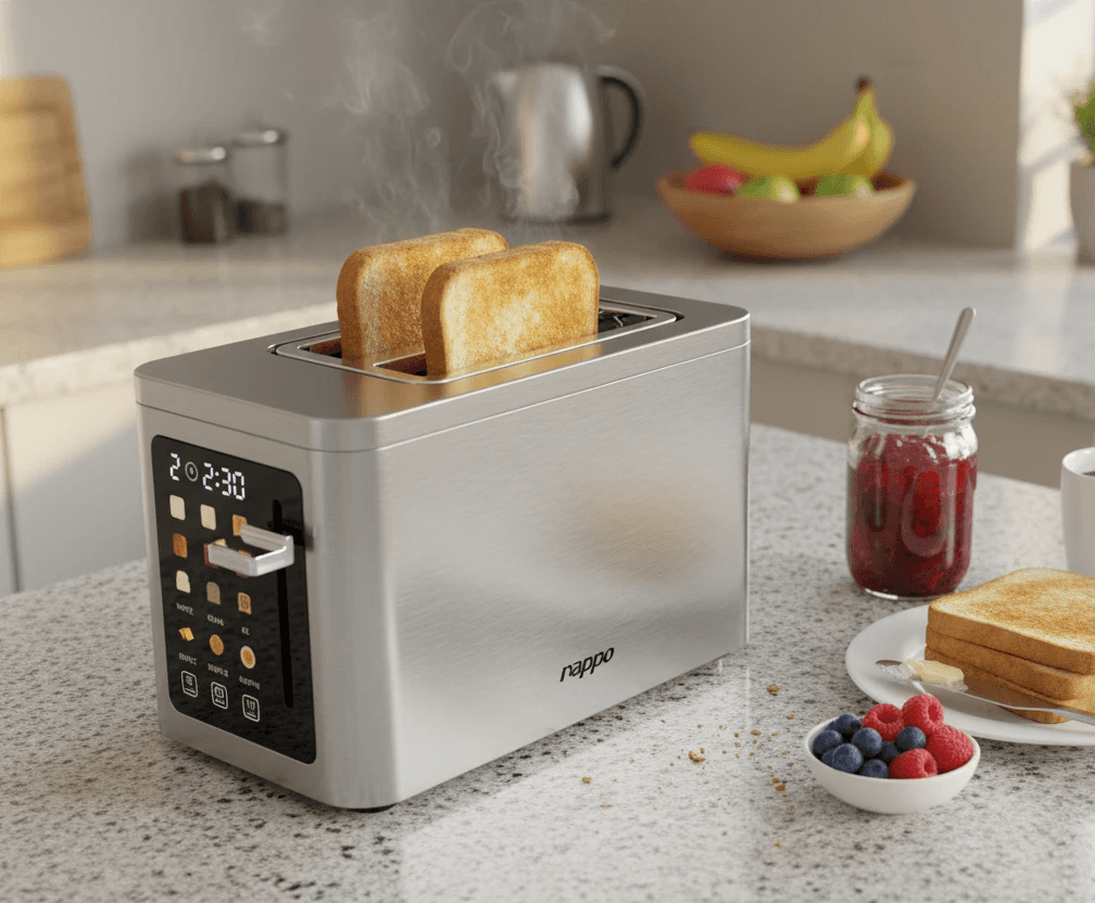 Tostadora doble de diseño moderno con display táctil a color y múltiples tipos de pan para un tostado a tu medida. Práctica, fácil de limpiar y con 6 niveles de tostado para resultados perfectos cada día.